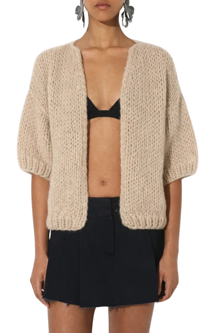 Alpaca Bomber Cardigan Short Sleeve in Beige